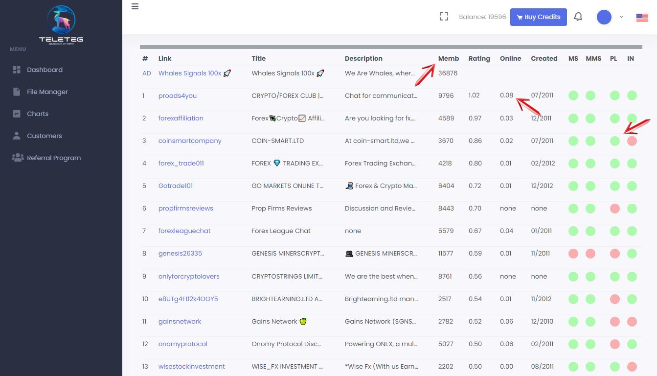 Review Search Results: Teleteg will present you with a list of search results matching your criteria. Take your time to review the search results and explore each listing to gain insights into their content, size, and engagement levels.