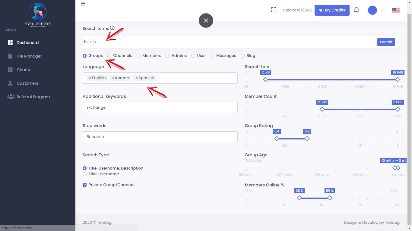 Define Your Search Criteria: Teleteg offers various search filters that enable you to narrow down your target audience. Some of the key search parameters include: